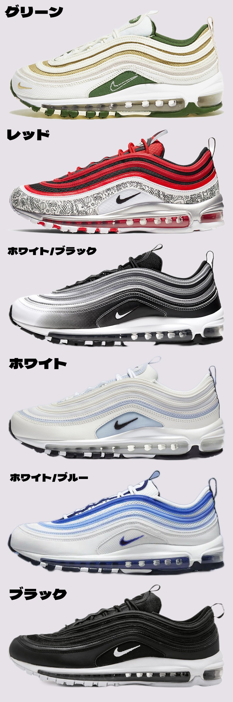 表示カラー: グリーン.レッド.ホワイト/ブラック.ホワイト.ホワイト/ブルー.ブラック