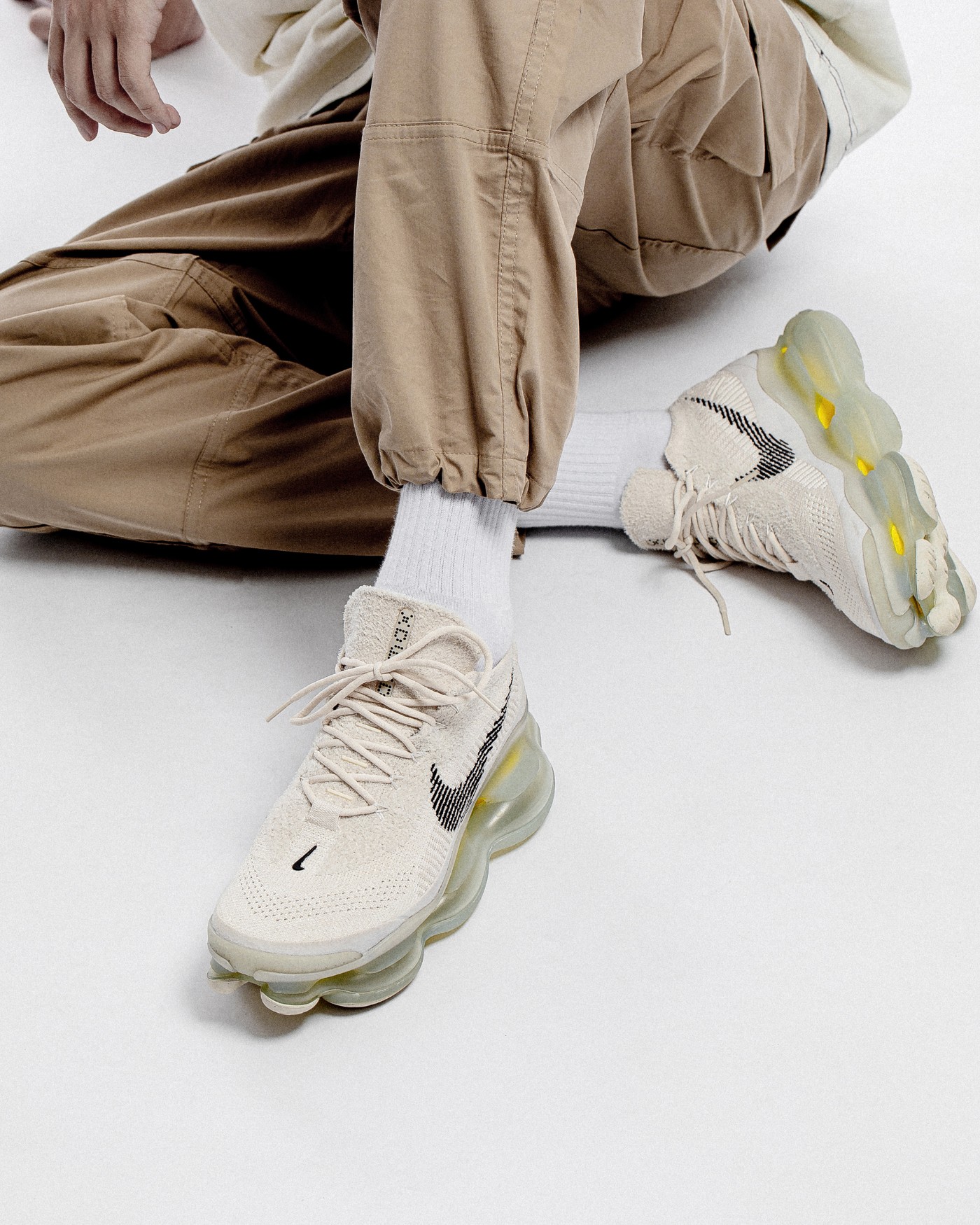 ナイキは引き続きエア マックスのラインナップを拡充し、2022 年のスコーピオン シルエットを先導します。ファントムの配色は、ライト クリーム ベースのニットで、ダーク グレーの色合いの上にスウッシュとシグネチャーのブランドがあしらわれています。スニーカーを特別なものにしているのがソール ユニットですが、その波状のデザインは不透明で、未来的な効果のために黄色がかっています。プライムニットアッパーラバーアウトソールスタイルコード: DJ4701-001