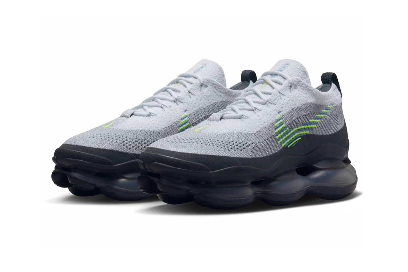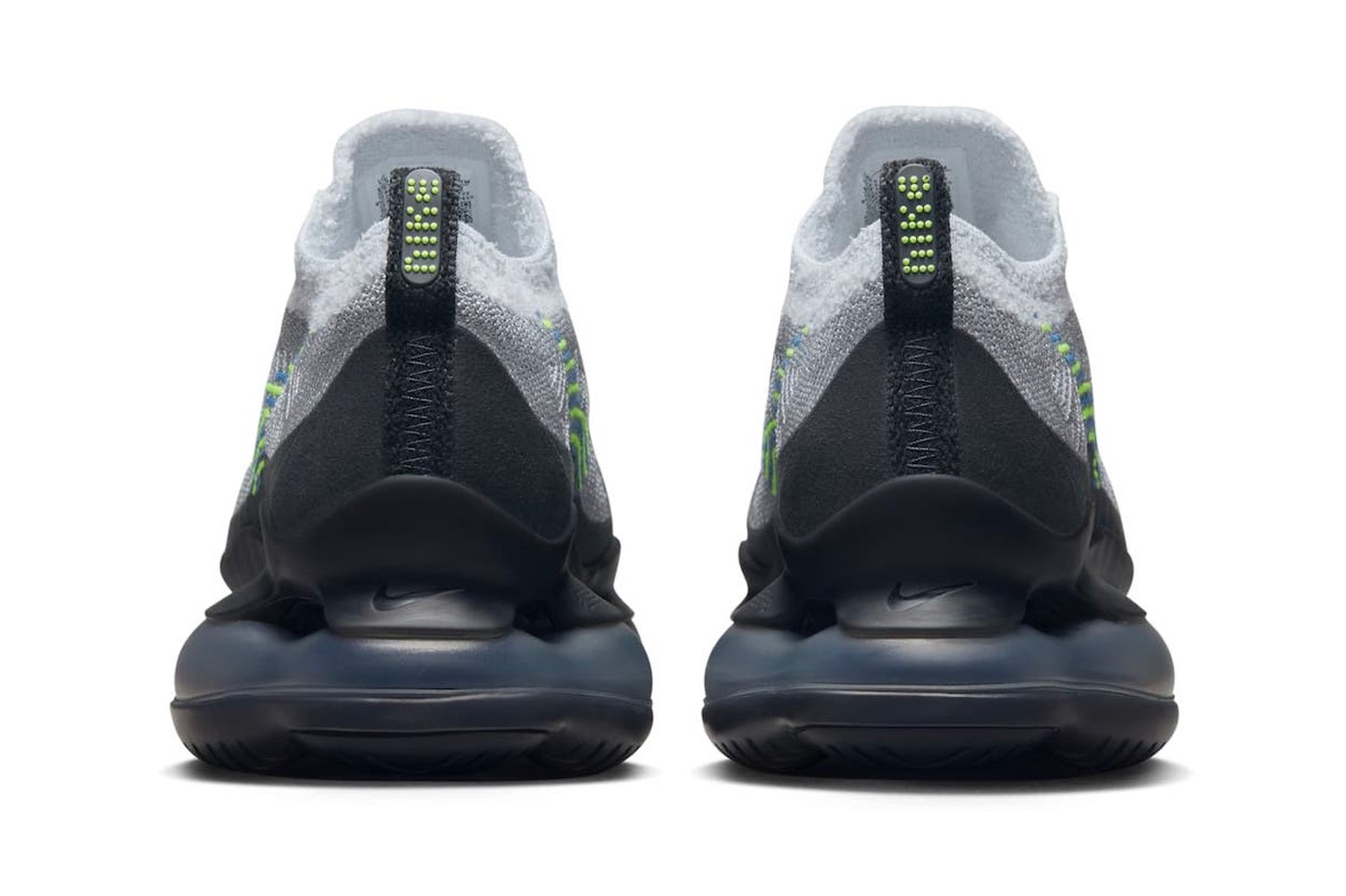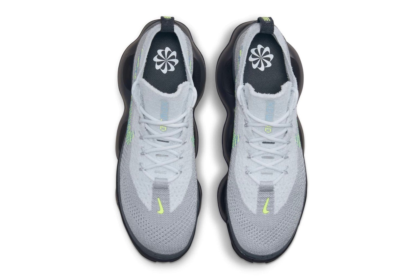 未来を見据えたデザインで、快適な履き心地を実現。 エア マックス スコーピオン フライニットは、「ポイントロード」のAirユニット (足取りに合わせて衝撃を吸収するクッショニング) を搭載し、未来的な感覚を追求しています。 見た目も重視し、驚くほど柔らかいシェニール織りのような素材をアッパーに使用しました。